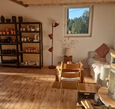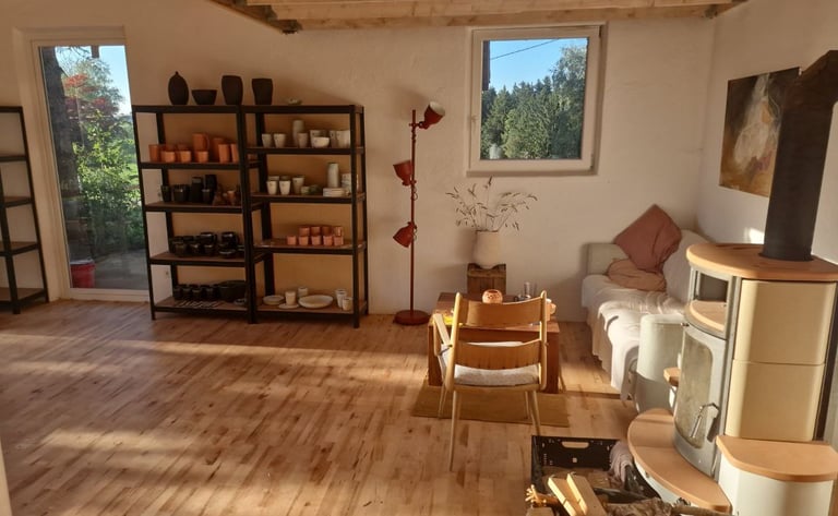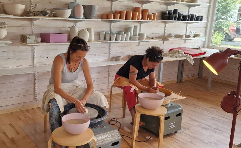 Wenn du selbst kreativ werden möchtest, bist du herzlich eingeladen, an einem meiner Töpferkurse an der Drehscheibe teilzunehmen. In entspannter Atmosphäre lernst du, den Ton zu formen, zu zentrieren und eigene Stücke entstehen zu lassen – Schritt für Schritt und mit ganz viel Freude am Tun.